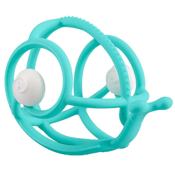 Conheça o Caracol Chocalho de Mombella em uma nova versão! Com antenas e saliências adicionais que permitirão uma massagem ainda melhor nas gengivas doloridas durante a dentição! O mordedor de silicone Caracol não só apoia o bebé no crescimento dos primeiros dentes, mas também serve como um chocalho encantador, sonoro e suave para a audição do bebé. Nas laterais existem círculos brancos que estimulam a criança a participar de jogos físicos: virar a cabeça atrás do brinquedo ou segui-lo. O mordedor de silicone macio cabe perfeitamente nas mãozinhas e permite que o seu filho pratique o reflexo de agarrar, enquanto desenvolve as habilidades motoras da criança. O produto é seguro. Pode ser usado na máquina de lavar louça, micro-ondas e congelador.