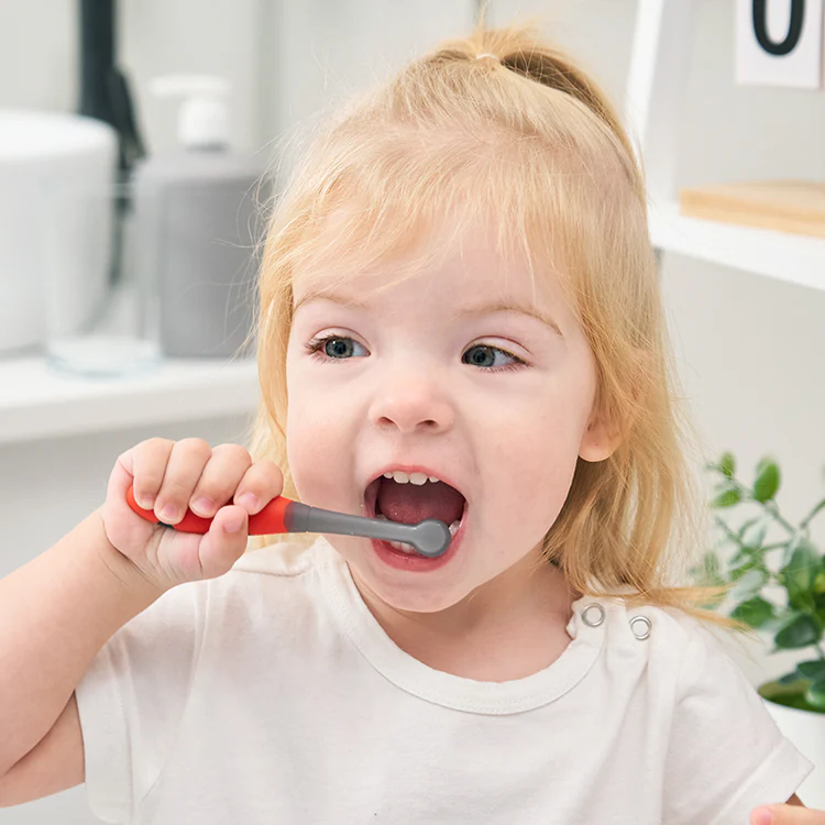 - A escova de dentes de silicone infantil pode ser lavada na máquina de lavar loiça e refrescada no congelador.