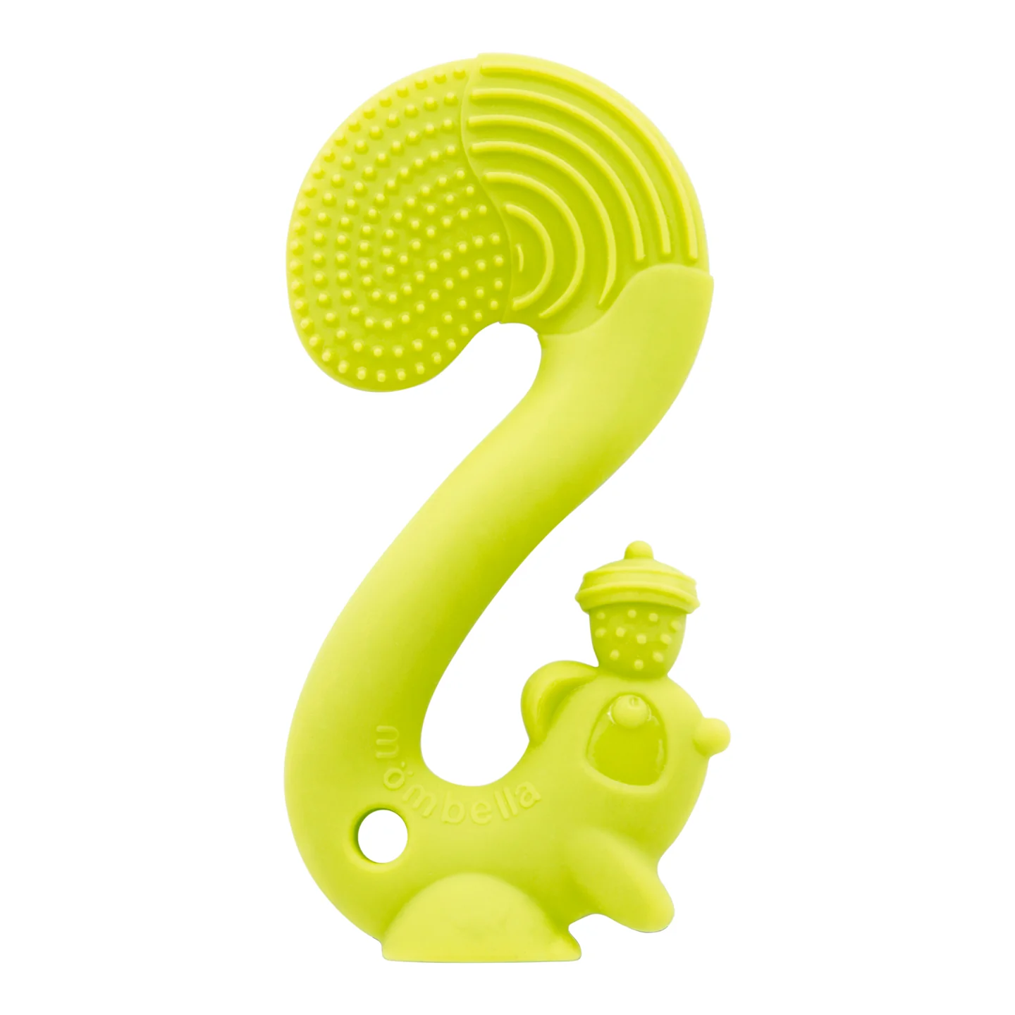 Um mordedor de silicone macio para bebé na forma de um esquilo alegre. O formato da letra “S” evita que o bebé se engasgue, pois foi pensado para as crianças mais novas. O mordedor de bebé massageia as gengivas delicadas e alivia a dor durante a dentição. A forma e o tamanho certos permitem que a criança segure facilmente. O mordedor para crianças também pode ser utilizado para servir, por exemplo, papas e purés. A forma de esquilo e as suas cores vão incentivar o seu bebé a brincar.