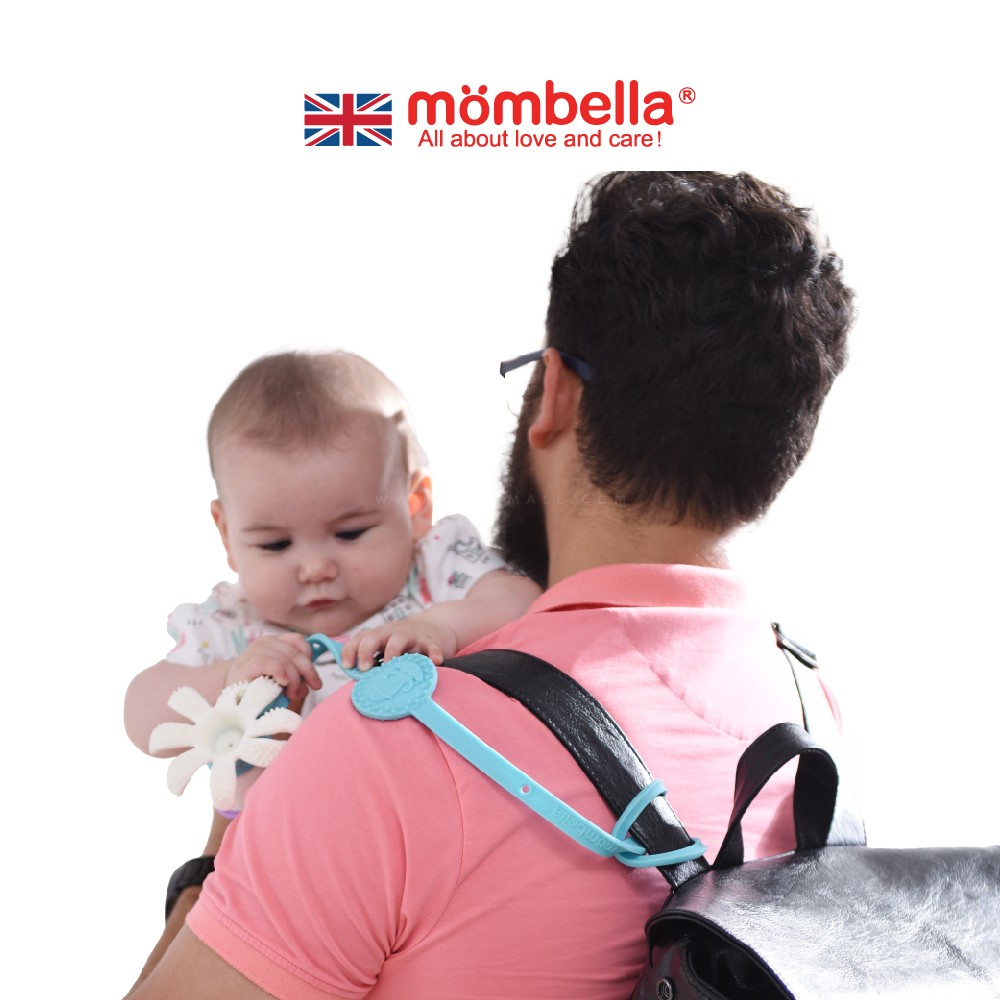 Perfeito para prender em cadeiras de papa, berços, sacos de muda fraldas, carrinhos de bebé, carrinhos de supermercado e muito mais. O prendedor de dentição de silicone de Mombella é ajustável em comprimento e é perfeito para manter biberões, copos, acessórios de alimentação, chupetas e brinquedos longe do chão.